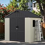 Greesum 8×6 FT Plastic Out of doors Storage Shed with Floor, Resin Sheds with Window and Lockable Door, Weather Resistant Organization for Garden, Lawn, Pool Supplies, Beige