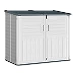 Greesum Outdoor Resin Storage Shed, 34 Cu.ft Horizontal Outdoor Storage Box Waterproof for Garden, Pool Storage, Garbage Cans, Beige