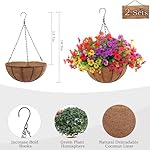Package:includes 2 hanging flower baskets, 24 packs of outside flowers, and 2 hemispherical shape plastic plant ball.Crafted with high-quality materials, our flowers and basket provide durability and a natural look.