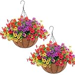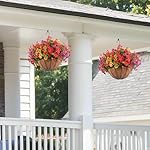 Good Quality: The hanging basket and artificial outdoor flowers were made of good quality material that don’t require maintenance after assembly. It’s UV resistance and won’t fade, sturdy enough for any weather. No watering needs. It looks full and beautiful all season.