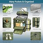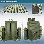 Hap Tim Picnic Basket Backpack for 4 Person with Blanket, Insulated Leakproof Cooler Compartment, Wine Holder, Cutlery Set, Engagement Gifts for Couples, White Elephant Gift Ideas, Green (36221-GR)
