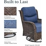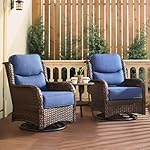 HILLGA Luxury Patio Furniture Set with 6-inch Thick Cushion, Outdoor High Back Swivel Rocker Patio Chairs, 3PCS Wicker Conversation Set for Deck Yard and Poolside, Blue (V2)