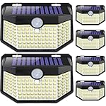 HMCITY 120 LED Outdoor Solar Lights with Motion Sensor and 3 Lighting Modes, IP65 Waterproof Wide Solar Wall Lights Ideal for Garden Patio Yard (Front Button 6Packs, Daylight White)