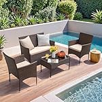 Homall 4 Pieces Outdoor Patio Furniture Sets Rattan Chair Wicker Set, Outdoor Indoor Use Backyard Porch Garden Poolside Balcony Furniture Sets Clearance (Brown and Beige)