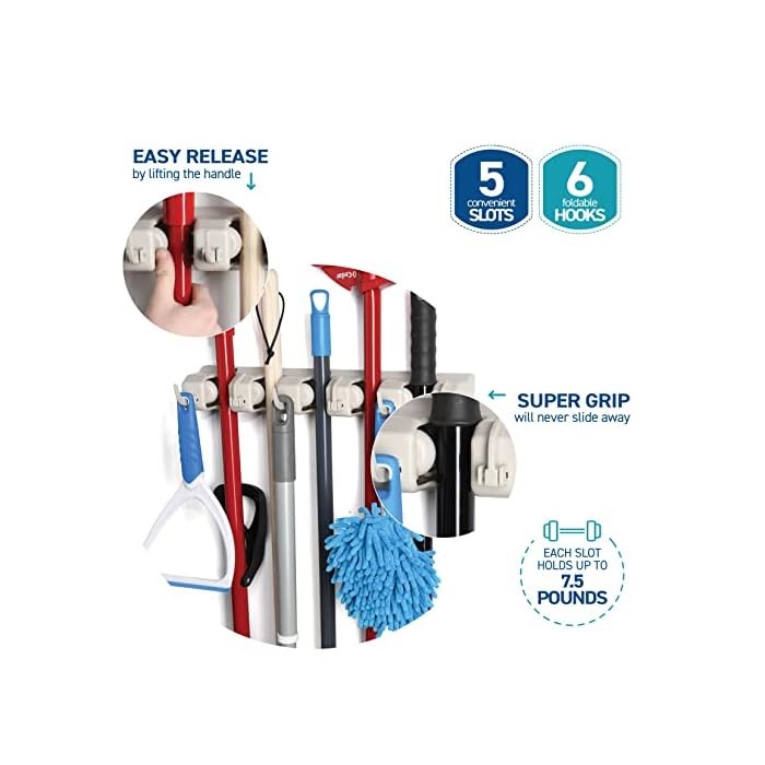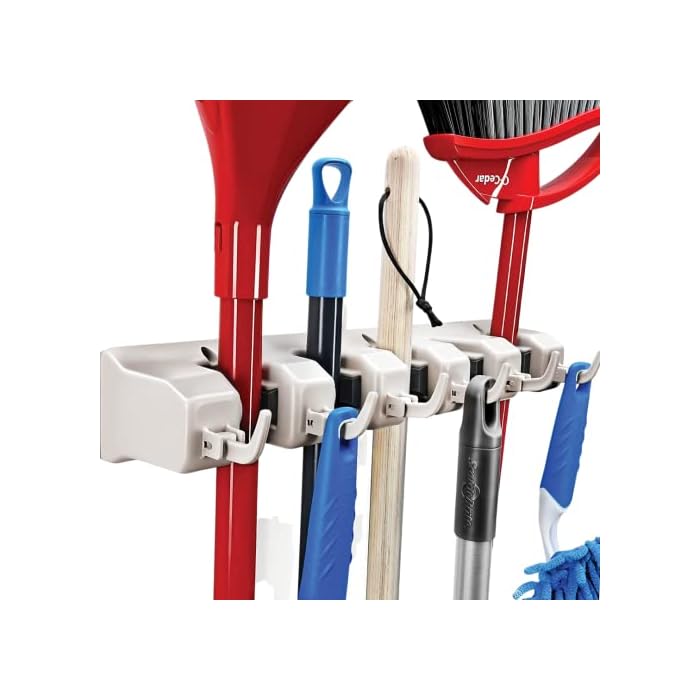 Home-it Mop and Broom Holder Wall Mount Garden Tool Storage Tool Rack Storage & Organization for the Home Plastic Hanger for Closet Garage Organizer (5-position)