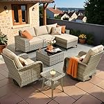 HOOOWOOO Outdoor Sectional Furniture Set,8 Pieces Wicker Patio Conversation Sets,L Shape All Weather Outside Couch Sofa Set with Swivel Chairs Ottoman,Beige