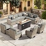 HOOOWOOO Outdoor Sectional Patio Furniture Set with Fire Pit Table,13 Pieces Wicker Conversation Sets L Shaped Couch,Extra Deep Out Door Sofa Outside Furniture with Swivel Chairs,Charcoal Gray