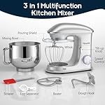 🍞【8.5 QT Large Capacity】Dough mixer 8.5 QT stainless steel bowl with take care of can satisfy a large circle of relatives of 3-7 people. The removable splash guard with inlet helps to add ingredients all the way through the use to prevent flour splashing. Mixers kitchen electric stand mixer easily to make cakes, breads, cookies, pizza, salads, muffins and more. Enjoy the fun of baking at any time.