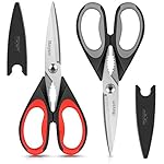 ALL PURPOSE KITCHEN SCISSORS: Heavy duty 8.5″ super sharp kitchen shears, Valued 2-Pack, comfort-Grip handles. Great All-purpose scissors for kitchen, household, new home, camper, first apartment, and outdoor general use, Great kitchen utensils set for women, men, adults, and older kids.【Patented Design】