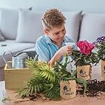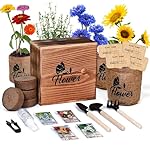 Indoor Starter 4 Kit with Complete Gardening Kit & Wooden Box, Growing into Shasta Daisy, Cornflower, Sunflower, Zinnia