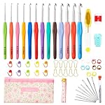 67 Pcs Great Value Set: This kit includes everything you wish to have to crochet. The 67 tools include 13 sizes rubber Maintain hooks, 20 knitting stitch markers, 10 ring markers, 10 gold pins, 9 sewing needles, 1 yarn guide ring, 1 tape measure, 1 row counter, 1 scissors and 1 crochet hook case.