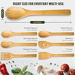 【6 PCS Bamboo Wood Spoon Set】The package includes fried spatula, soup ladle, salad spoon, flat spatula, strainer spoon, slotted spoon. These spoons measure 12 inches. It may meet your day-to-day cooking needs.