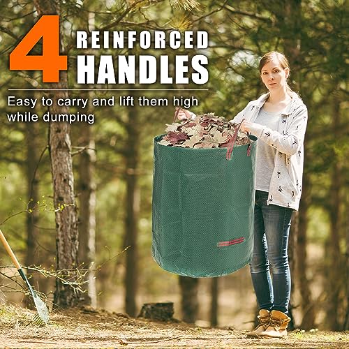 Easy-to-Use Leaf Bag: The detachable hoop keeps the leaf bag open and upright without extra support, making it easy to fill; Four reinforced nylon handles, two at the top and two at the bottom, make collecting trash a breeze, allowing you to easily carry the yard trash bags or lift it high when dumping