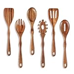 KARRYOUNG Acacia Wooden Spoons for Cooking – 6-Piece Wooden Kitchen Utensil Set with Spatula, Slotted Spoon & Pasta Fork