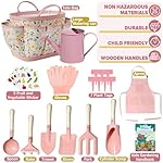 Kids Gardening Set 14Pcs Gardening Tools for Kids with Tote Bag,Watering Can, Shovel, Apron, Garden Book and More Educational STEM Learning Outdoor for Toddlers Boys Girls (Pink)