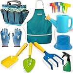 Kids Gardening Set, Garden Tool Kit for Toddlers Include Kids Trowel, Shovel and Rake, Children Gloves, Hat, Tote Bag, Spray Bottle, Watering Can and Apron for Girls Boys Outdoor Gardening and Beach