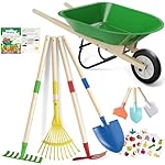 【Complete Kids Gardening Set with Wheelbarrow & Tools】All-inclusive set includes: 1 kids wheelbarrow, 4 long-maintain wooden tools (shovel/rake/hoe/leaf rake), 3 short-maintain tools (2 shovels + rake), 5 vegetable stickers, and illustrated gardening handbook. Very best for ages 3-8 to dig, plant, and harvest like real gardeners. Ideal as out of doors playset for kids, toddler gardening set with wheelbarrow, and Montessori out of doors activity kit. PLEASE CHECK WHEELBARROW INSTALLATION VIDEO, INCLUDE STEP-BY-STEP ASSEMBLY VIDEO INSTRUCTIONS!