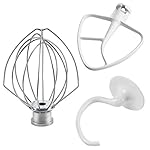 【𝟑-𝐏𝐢𝐞𝐜𝐞 𝐊𝐢𝐭𝐜𝐡𝐞𝐧 𝐌𝐢𝐱𝐞𝐫𝐬 𝐀𝐜𝐜𝐞𝐬𝐬𝐨𝐫𝐢𝐞𝐬】Kitchen mixing attachments include 1*K45WW 6-wire whip whisk,1*K45DH C dough hook and 1* K45B coated flat beater,they meet all mixing tasks with more efficiency, ease and better results than a blender. Make it easy to prepare cakes, doughs, pizzas, muffins, waffles, icing, meringues, breads, cookies, pastries, mashed potatoes and more.Kitchen Mixers Accessories will assist you to get the job done.If you wish to buy the full stainless steel version,search B0CH3GMBSJ in store