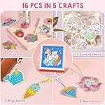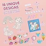 VERSATILE CRAFTING EXPERIENCE. Unlock a world of magical and delicious creativity with our sparkling diamond art for kids! This gem painting kit features 16 stunning & colorful designs that showcase a host of magical creatures, vibrant fruits, and delectable desserts, all across 5 specialized crafts including diamond gem painting, suncatchers, keychains, necklaces, and stickers.