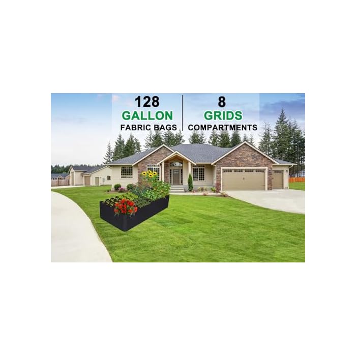【8 Grids Fabric Garden Bed】 You’ll receive a fabric raised garden bed with 8 grids design, which measures about 3 x 6 ft, and the height is 12inch. Large enough size garden grow bed bags and plenty compartments to accommodate quite a few plants, flowers, and vegetables