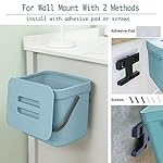 Wall Mount/Under Sink/Countertop Trash Can: The small trash can with lid can also be easily hung on kitchen cabinet doors, pantry doors. (The thickness of the door will have to be less than 0.86 inch) Moreover, this food waste caddy may also be wall-mounted to under sinks, cupboard, kitchen wall or bathroom wall with adhesive pad or screws.