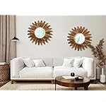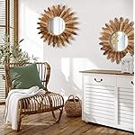 LOSOUR 2 Pack 22 Inch Boho Wall Sunburst Mirror Rustic Round Wood Decorative Mirror Boho Wall Art Decor for Entryway Bedroom Living Room
