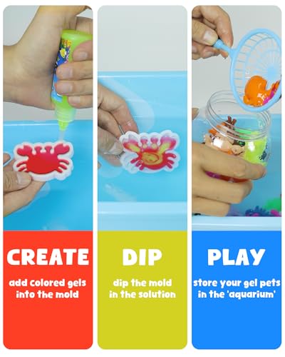 Magic Water Elf Toy Kit:This magic elf set is easy to demould, and the finished product is colorful, soft and elastic. Watching the gel turn out to be into quite a lot of shapes of marine creatures such as octopus and goldfish brings children a unique creative experience.