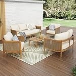 【Durable Acacia Wood Construction】Crafted from high-quality acacia wood, this 5-piece outside conversation set is built to resist the elements and withstand wear and tear. The sleek and exotic look of acacia wood adds a touch of elegance to your outside space.IF there is any problem, please visit our website: Merax.com or contact us via this email: csr@merax.com