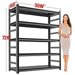 Metal Garage Shelving Unit, Heavy Duty 5-Tier Adjustable Storage shelves, Steel Shelving, 3000 lbs Capacity, Industrial Shelves for Heavy Tools and Equipment, Ideal for Garage, Basement, Black, 72″