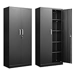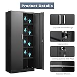Metal Storage Cabinet with Adjustable Shelves, Garage Cabinet with 2 Lockable Doors, Garage Storage Cabinet, Kitchen Pantry Cabinet – 71’H, Black