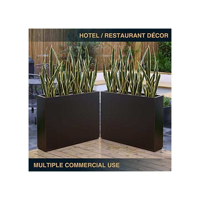 Metallic Heavy Planter for Outdoor Plants, 38Lx10Wx30H Inches Tall and Long Metal Divider Planter Box with Hand Brushed Gold Edge for Outside & Indoor, No Assembly (Black)