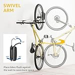 【Upgraded 150° Swivel Design】 Swivel design with bearing system, swivel bike rack wall mount conveniently stores bikes in center, left or right-angled position, making it a convenient storage solution around parked cars and inside apartments. The swivel system allows you to store bike flush against the wall. Just hook the front wheel in place, rest the back wheel on the stabilizer, and then rotate the bike wall hanger to the desired angle.