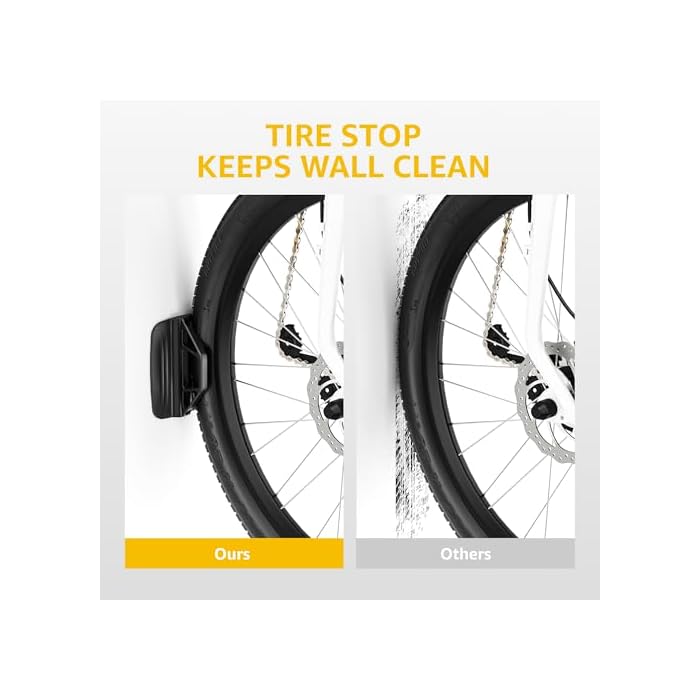【Upgraded 150° Swivel Design】 Swivel design with bearing system, swivel bike rack wall mount conveniently stores bikes in center, left or right-angled position, making it a convenient storage solution around parked cars and inside apartments. The swivel system permits you to store bike flush against the wall. Just hook the front wheel in place, rest the back wheel on the stabilizer, and then rotate the bike wall hanger to the desired angle.