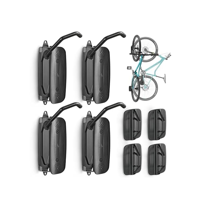 monTEK Swivel Bike Wall Mount, Bike Hangers for Garage, Space-Saving Vertical Bike Rack, Sturdy Bike Storage Rack Holds Up to 66lbs, Easy to Install, 4 Pack