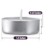 HANDY PREMIUM TEA LIGHTS CANDLES IN BULK: The 100 tea candles are compact yet generous in size (1.5” in diameter & 0.65” in height). These tealight candles are not only pretty & useful, they’re also very economical – perfect for big events like weddings!