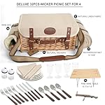 Multifunctional Wicker Picnic Basket Set for 4 with Blanket and Picnic Table, Insulated Picnic Set with Full Tablewares for Camping Outdoor Couples,Natural