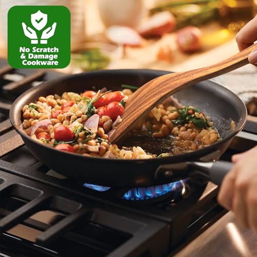 Healthier & Durable Natural Teak Wooden Utensils: This wood cooking utensils set is Crafted from 100% solid natural teak wood with no glue, toxins, or synthetic coatings, which provides a safer alternative to plastic – ideal for non-stick cookware and high-heat cooking. Teak’s dense grain naturally resists cracking, warping, and odors, ensuring long-lasting durability for daily use. These versatile utensils work perfectly with all cookware types, from ceramic to cast iron, combining lasting functionality with natural kitchen elegance