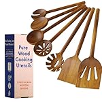 Non-Toxic Wooden Spoons for Cooking– 7-Piece Kitchen Utensils Set, Glue-Free & One-Piece Cooking Utensils, Natural Wooden Utensil Set with Plant-Based Finish, Free of Forever Chemicals
