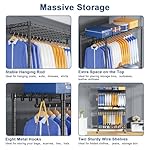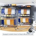 ▶【STURDY & RELIABLE】Closet organizer system made of high quality carbon steel,Makes it stable、sturdy and reliable,Not easy to tip over,Adopt high quality black coating to protect it from water and rust,Weight Capacity:Total 700lbs,Free-matching hooks on both sides also enhance the stability of the hanging clothes rack when using!
