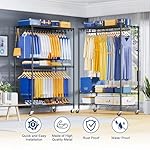 P8 Heavy Duty Clothes Rack(With Extended Width Design) Rolling Clothing Racks for Hanging Clothes,Portable Garment Rack with Lockable Wheels,51.2″ W x 15.8″ D x 80.5″ H,Max Load 700LBS,Black