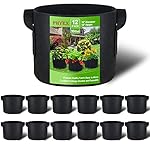 PHYEX 12-Pack 10 Gallon Grow Bags, Heavy Duty Fabric Pots with Handles, Reusable Plant Bags for Vegetable, Herbs & Flowers, BPA-Free, Breathable, Durable
