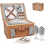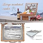 Picnic Basket for 2 Persons,Handmade Wicker Picnic Baskets Set with Insulated Cooler & Cutlery Kit, Gift Basket for Couples,Valentine Day, Thanks Giving, Birthday, Wedding, Outdoor Party