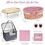Picnic Basket for 2 with Table and Blanket Collapsible Cooler Bag Insulated Picnic Set for Beach Picnic Hamper Picnic Date Essentials for Outdoor Picnic Accessories Wedding Gift/Bridal Shower Gift