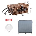 Complete Picnic Set for 4: HYBDAMAI picnic basket set includes the whole lot for an unforgettable outside experience: stainless steel cutlery, porcelain plates, wine glasses, and a waterproof mat. Perfect for beach days, camping trips, or romantic picnics, this wicker picnic basket elevates any outing