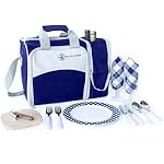 Picnic Basket Set for 2 – Insulated Cooler Bag with Wine Bottle Holder, Plates, Utensils & Glasses – Portable Picnic Tote for Couples, Outdoor, Beach, Park, or Travel