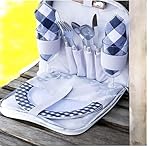 Complete Picnic Set for Two – Comes with plates, utensils, wine glasses, napkins, cheese cutting board and bottle opener—everything you want for a perfect date outdoors. [picnic set for couples, travel picnic kit]