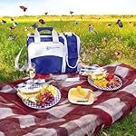 Insulated Cooler Compartment – Helps to keep your snacks and beverages fresh and cool with a thermal-lined interior, ideal for warm-weather outings. [picnic tote with cooler, insulated picnic bag]