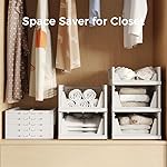 【Assembly Easily & Stackable】: Easy to set up, follow the steps in pictures. Adjust to your own liking by stacking the perfect number to fit your own space. Set of 5 wardrobe clothes organizer can be stackable which make home space organized, max the use of vertical space. You can stack multi-layer wardrobe storage organizer according to your needs freely. Dimensions of each when set up: 16.6″ x 13.1″ x 7.32″ (L x W x H).