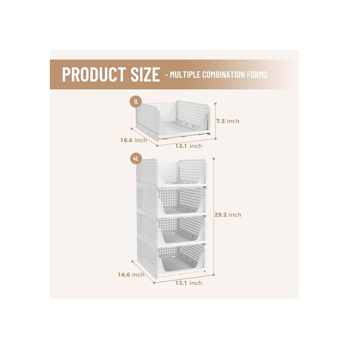 【Assembly Easily & Stackable】: Easy to set up, follow the steps in pictures. Adjust to your own liking by stacking the perfect number to fit your own space. Set of 4 wardrobe clothes organizer may also be stackable which make home space organized, max the usage of vertical space. You’ll stack multi-layer wardrobe storage organizer according to your needs freely. Dimensions of each when set up: 16.6″ x 13.1″ x 7.32″ (L x W x H).