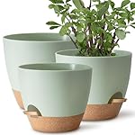 Plant Pots 12/10/9 inch Set of 3, Self Watering Flower Pots Indoor Outdoor, Planters with Drainage Hole Saucer Reservoir, Green